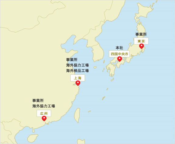〒799-0113 愛媛県四国中央市妻鳥町2192 地図 TEL 0896-58-6404 FAX 0896-58-6093 【事業所】上海・広州・東京 |