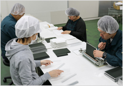 業界団体基準に準ずるレベルの品質基準にもとづいた社内の検品体制を敷いております。社内での加工・検品体制があるため、緊急時も迅速に対応できます。また、海外の自社検品工場での検品も徹底しています。